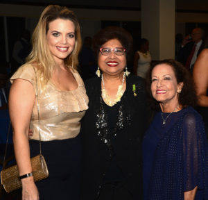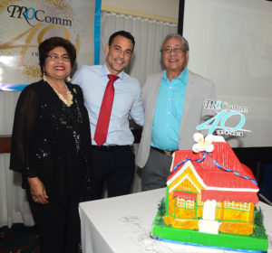 PROComm's Founder and Executive Chairman Jean Lowrie-Chin (centre) happily joins Terra Nova executives Ruth Hussey, Managing Director (right) and Christelle Harris, General Manager at PROComm's 40th Anniversary party on Thursday, November 29 at The Jamaica Pegasus Hotel.